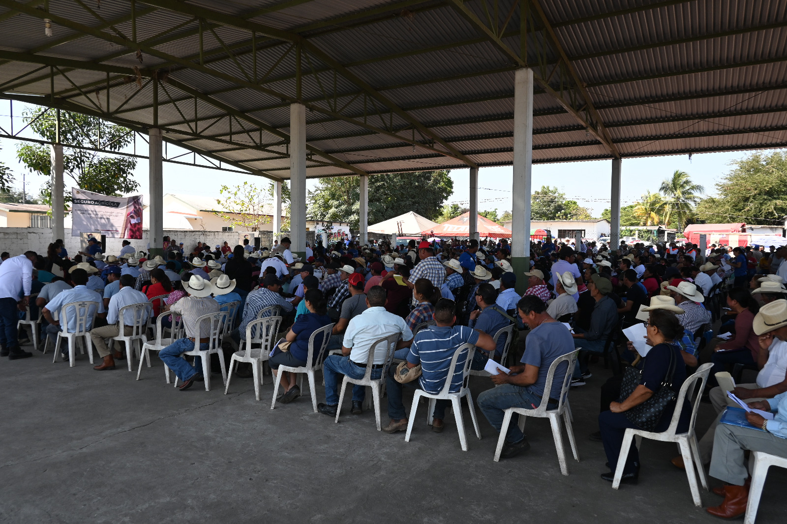 Tras una serie de reuniones en el municipio y en la capital del estado, el alcalde Lagunes Jáuregui logró que este día se entregaran los apoyos en _, donde acudieron 1079 beneficiarios de localidades como San Cristóbal, San Francisco Nacaxtle, Corral de Piedra, Loma China, La Cañada, Vista Hermosa, Cerritos, Sonora, Paso Pimienta, San Felipe, Potrero de la Cruz y El Coyol.