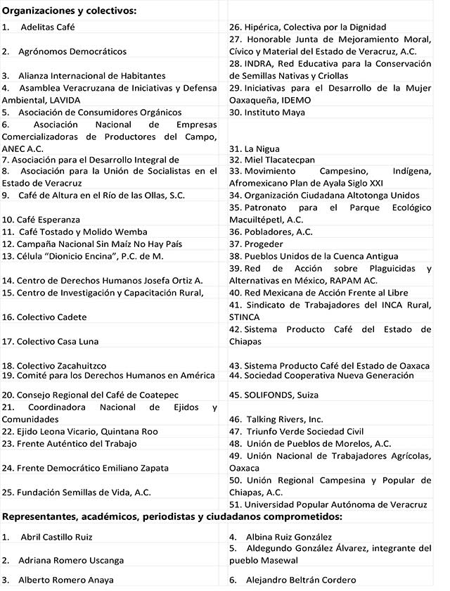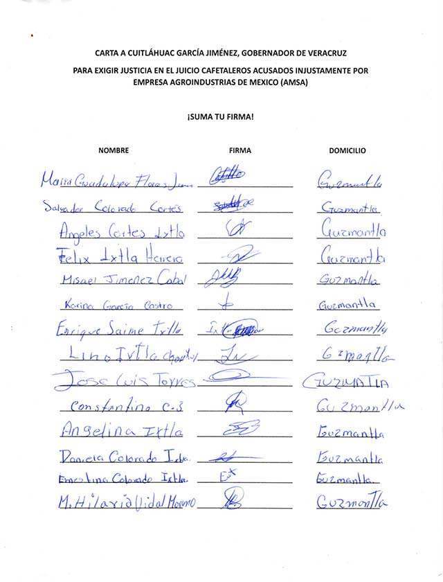 ¡SOLIDARIDAD CON LOS CAFETALEROS ACUSADOS EN VERACRUZ CON PRUEBAS FALSAS POR LA EMPRESA AMSA- ECOM!
